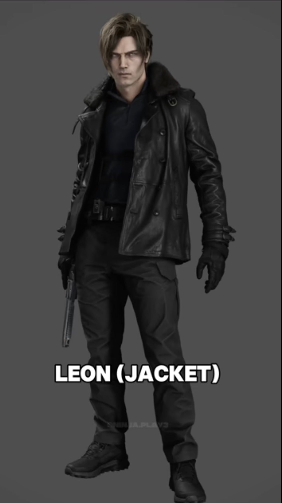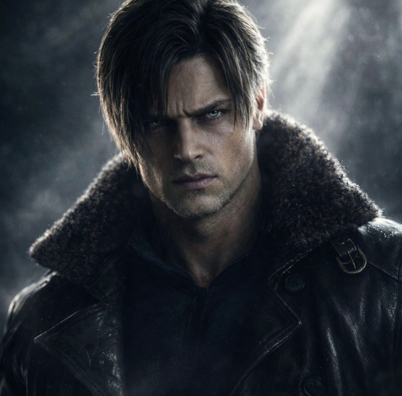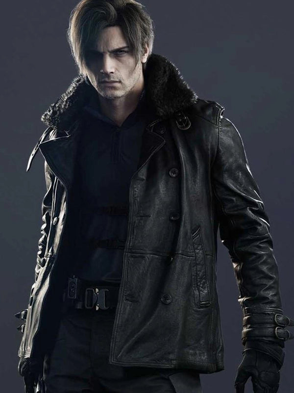 • Collar Style: Lapels with strap and buckle + fur on the upper collar (fur same as used for Francis B3 Black Leather Jacket) (must be thick, full, and plush, deep black, with a wide spread when open.)