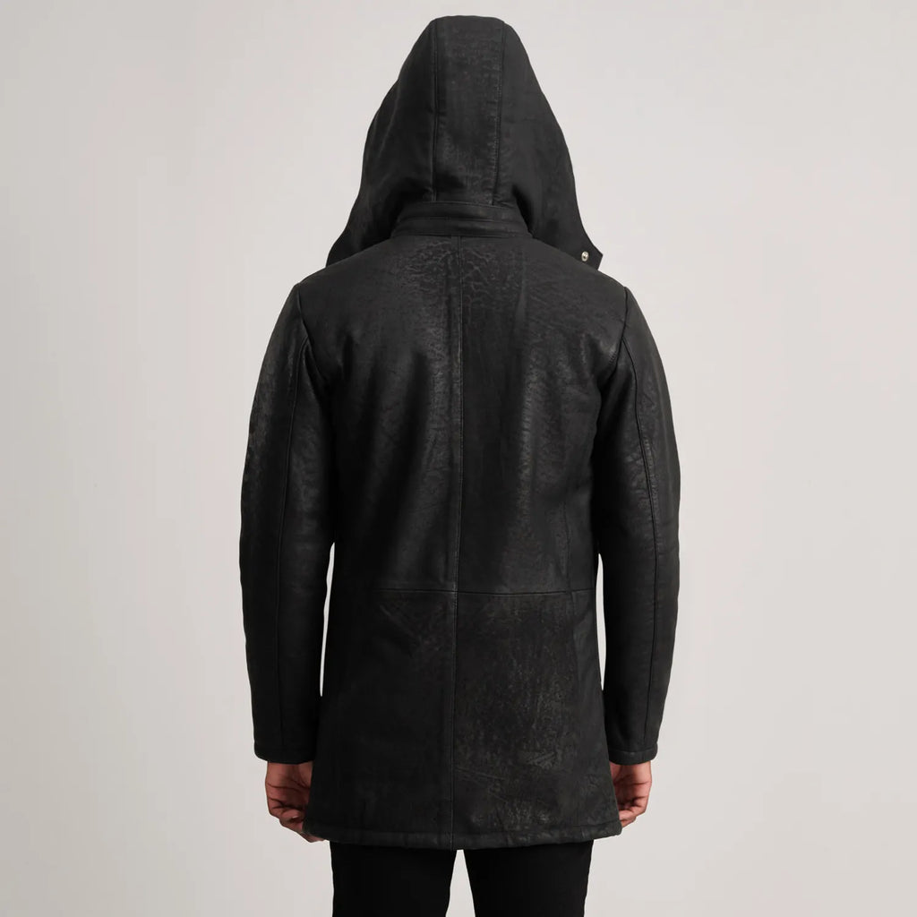 Nolan Distressed Black Leather Duffle Coat